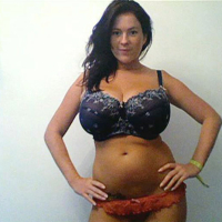 Sexy babe Rachel flaunting her huge boobs on a tub